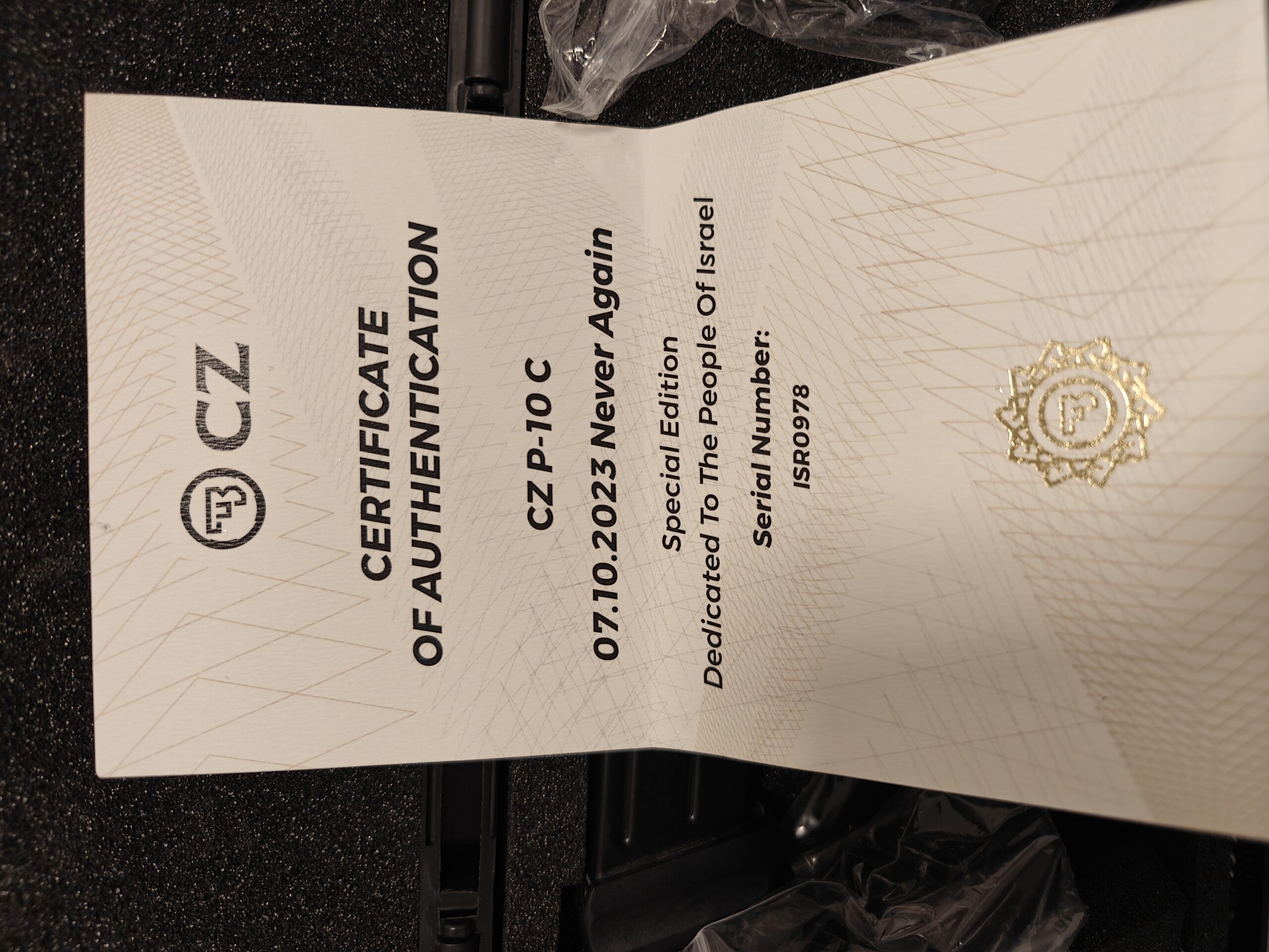 אקדח CZ P10C מוגבלת מוגבלת של 1000 אקדחים בלבד ש-CZ יצרו אחרי השביעי באוקטובר.