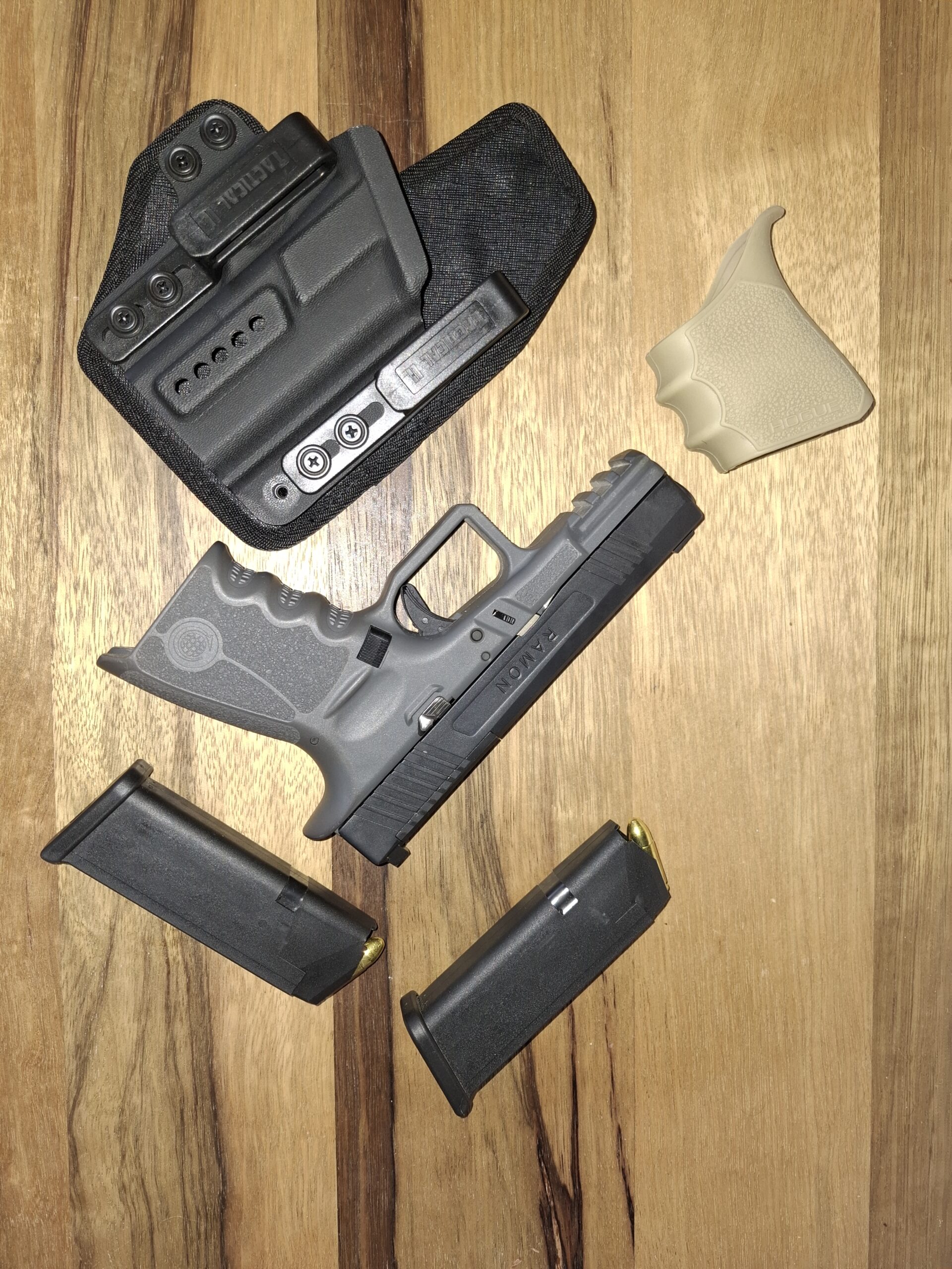 מגיע עם 2 מחסניות ומשפר אחיזה לידית של HOGUE נרתיק של טקטיקל חדש שקניתי שבוע שעבר בעוד 200 למי שרוצה